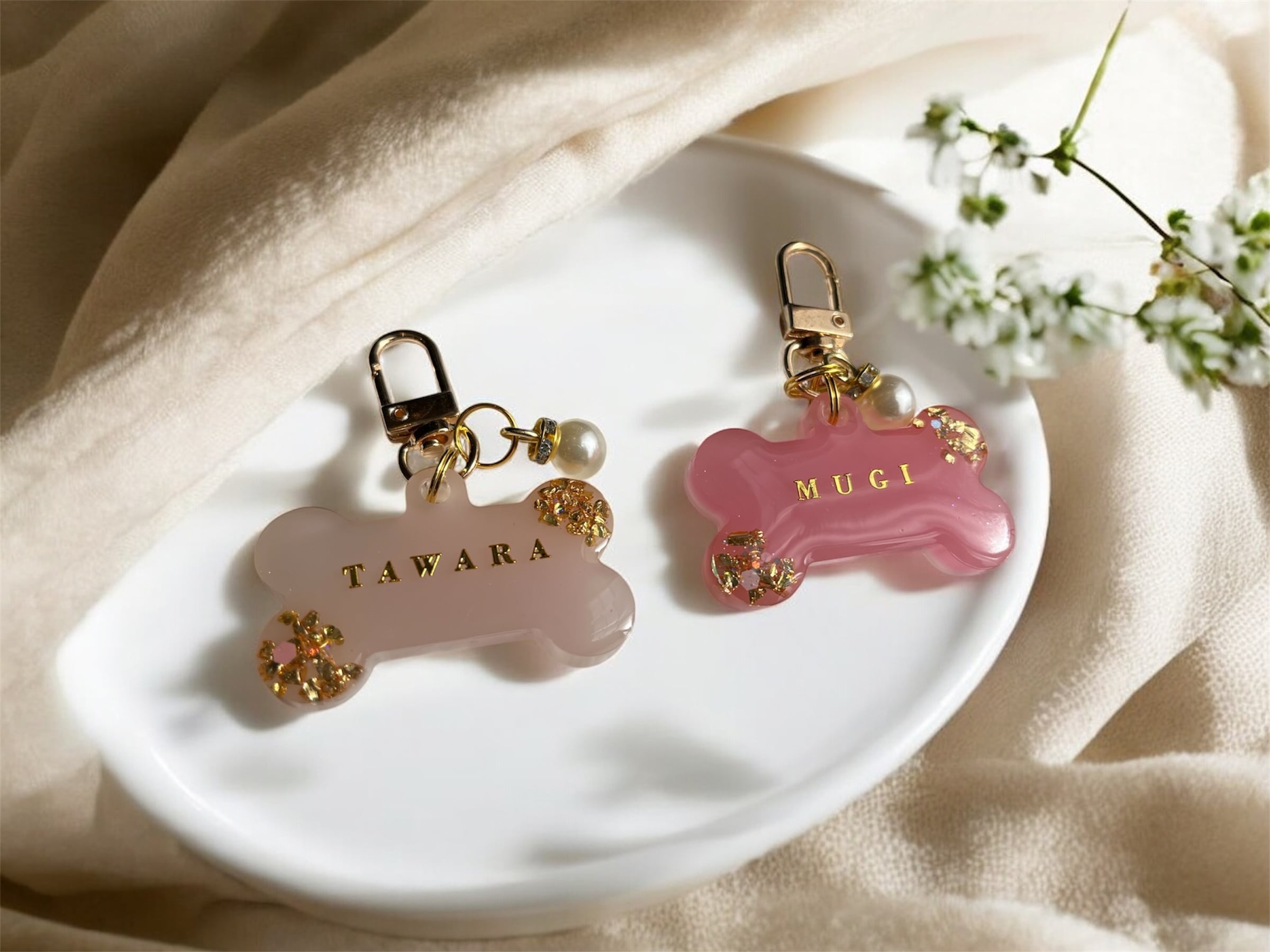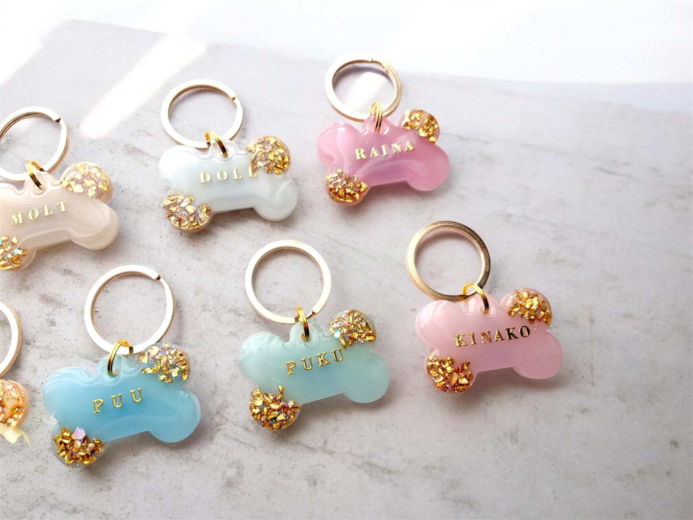 やさしい色合いと、ころんとした骨型デザイン。