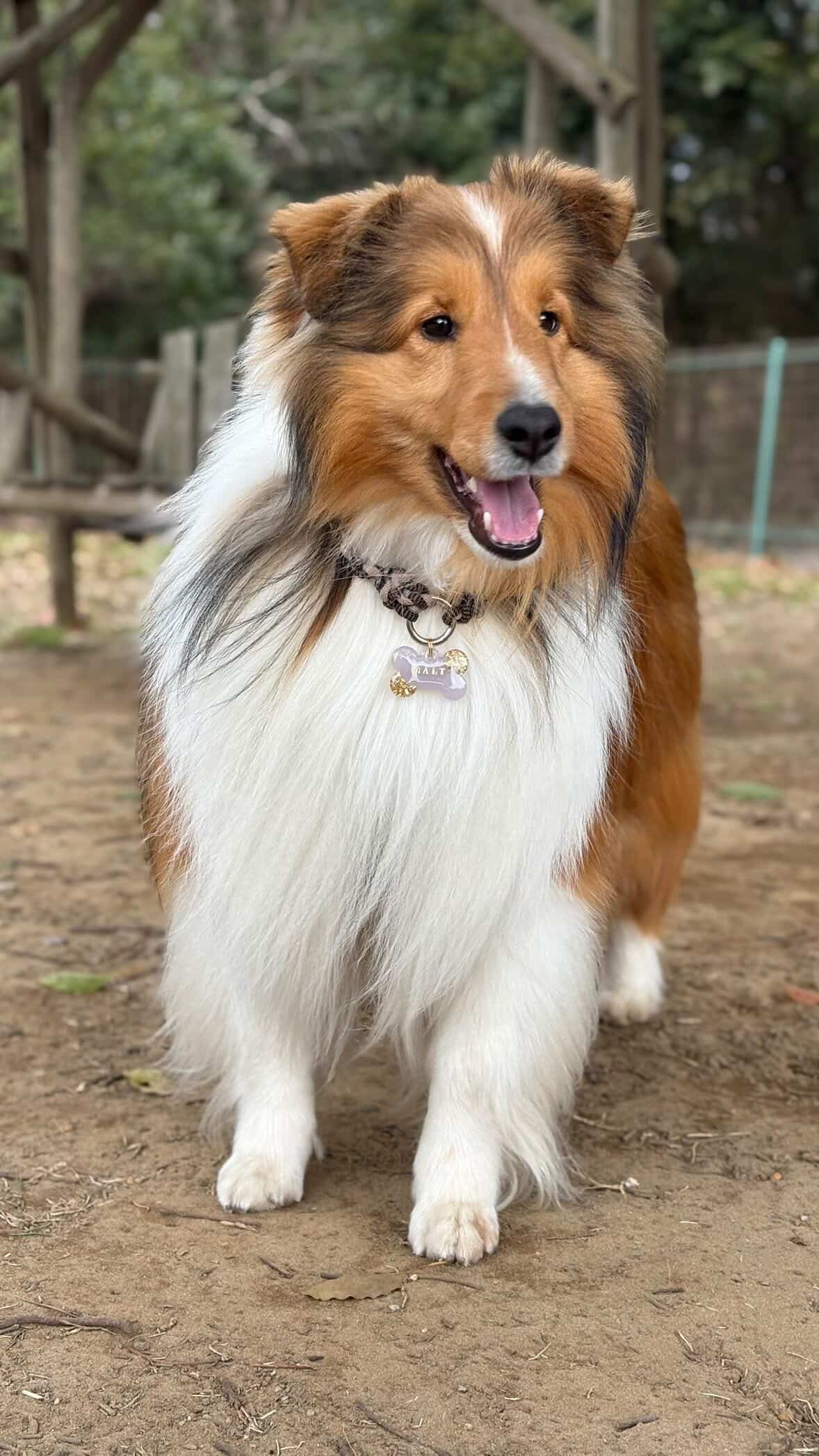 中型犬の首元にちょうどいい迷子札です。