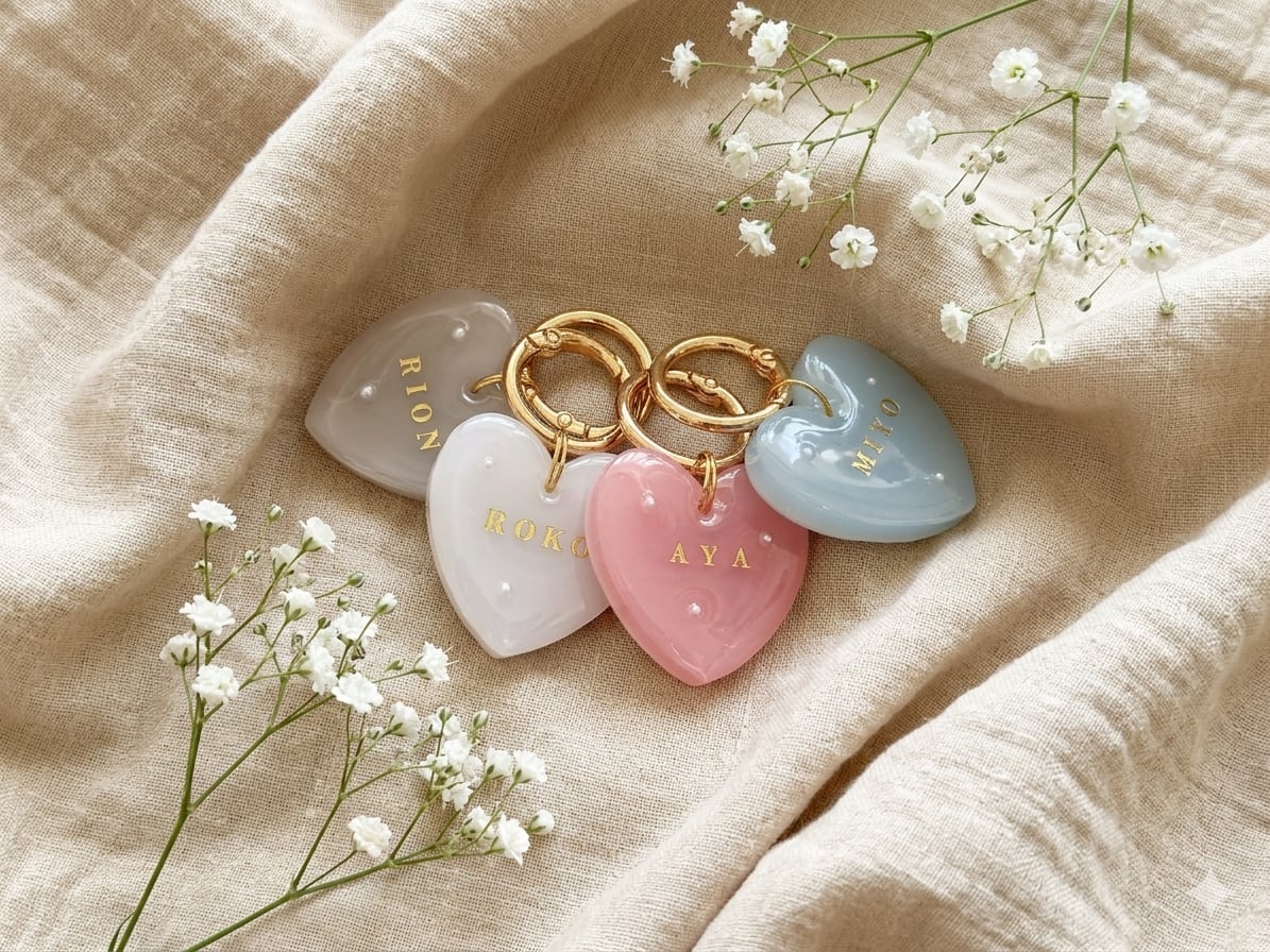 【名入れ】うる艶ハートキーホルダー|推し活・ギフト・お守りに