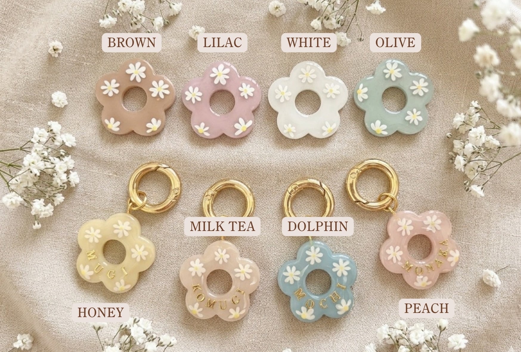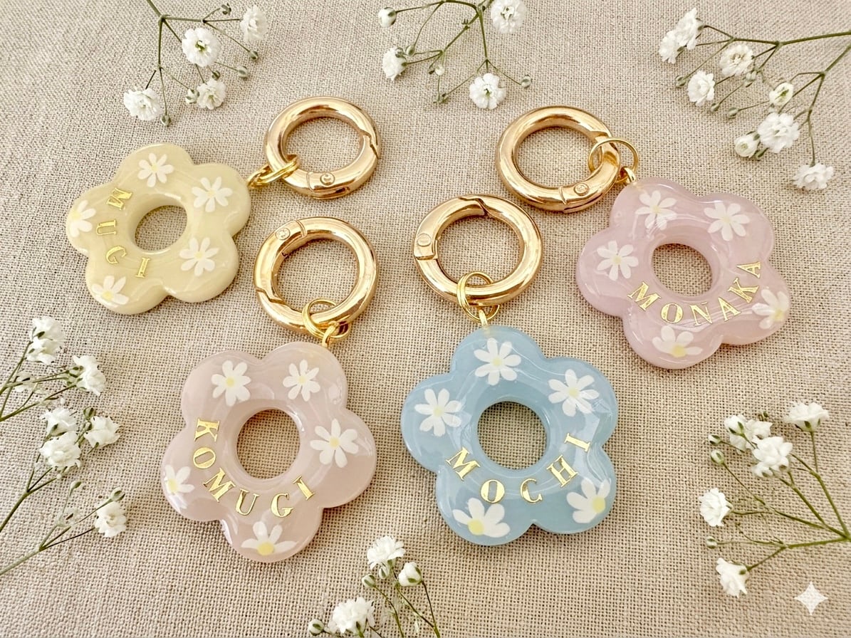春のお花迷子札|名入れ・電話番号対応|全4色|犬用ネームタグ