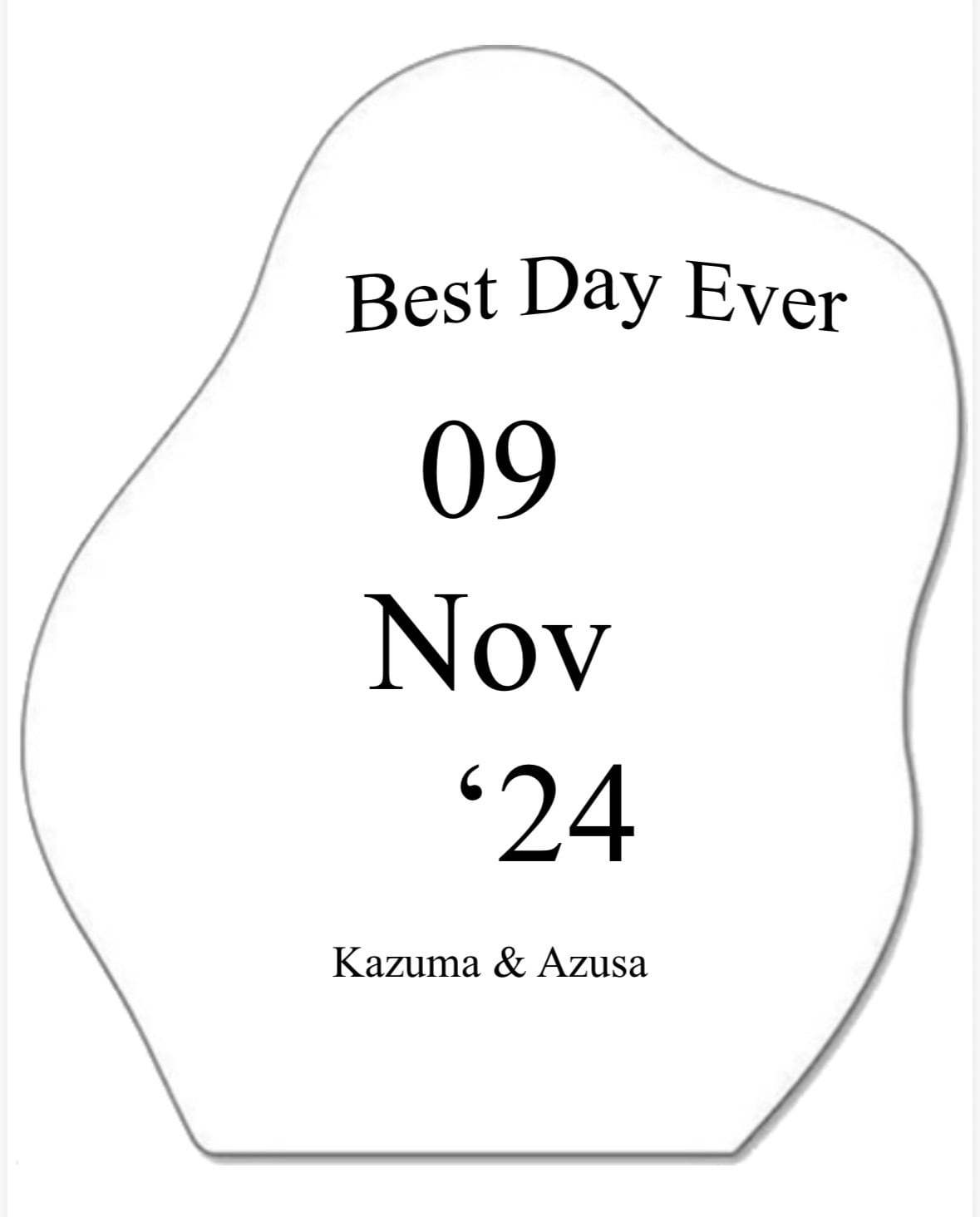 ① 挙式日(例:2024.11.09 / Nov 09 ‘24 など)
